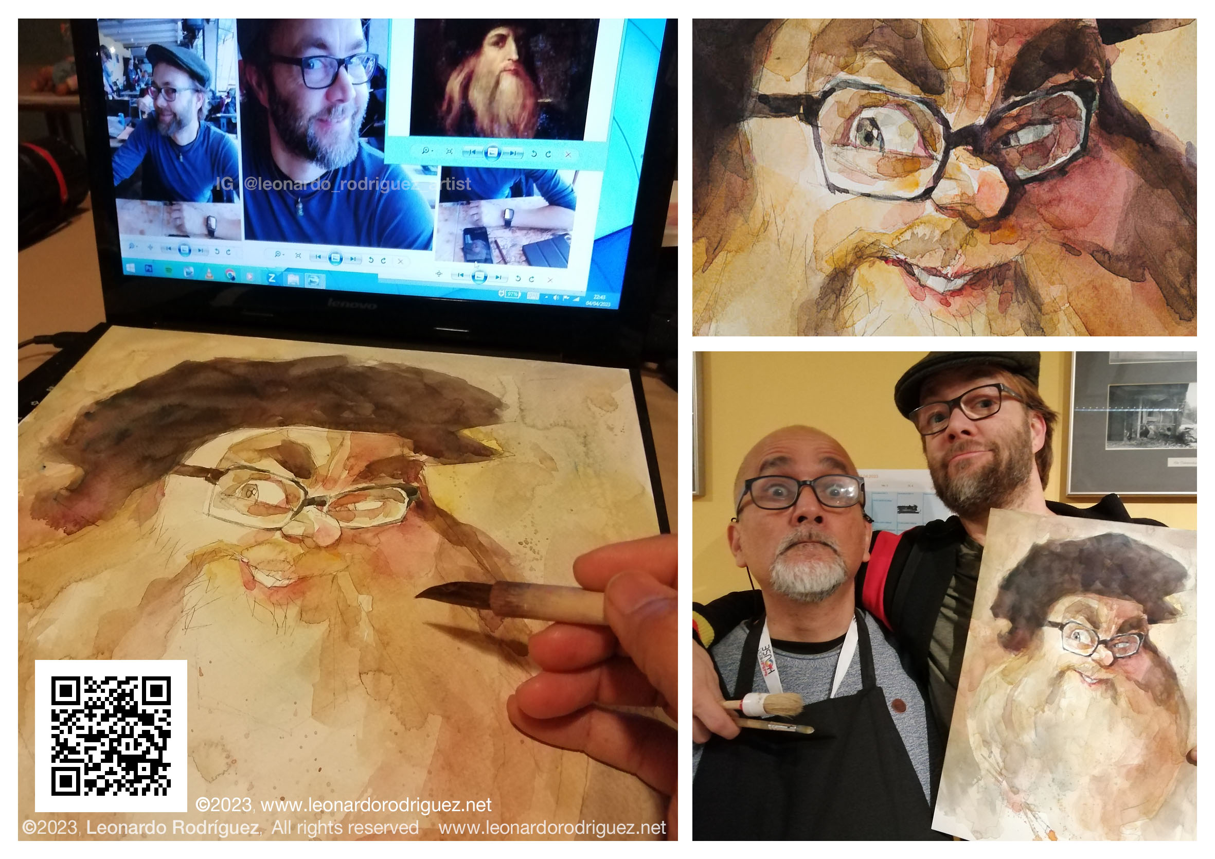 Caricatura a  mi colega Daniel Stieglitz quien estuvo todo el festival haciendo su particular versión de la Última cena así que se me ocurrió ya ponerlo como mi Tocayo, Leonardo.  Eurocature 2023, Viena.